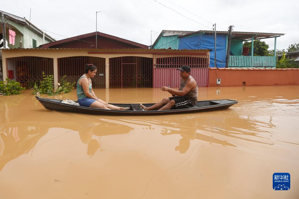 位于巴西西北邊境的阿克里州近期連遭暴雨引發(fā)洪災。由于支流水量暴增,阿克里河水位3月31日仍處高位。