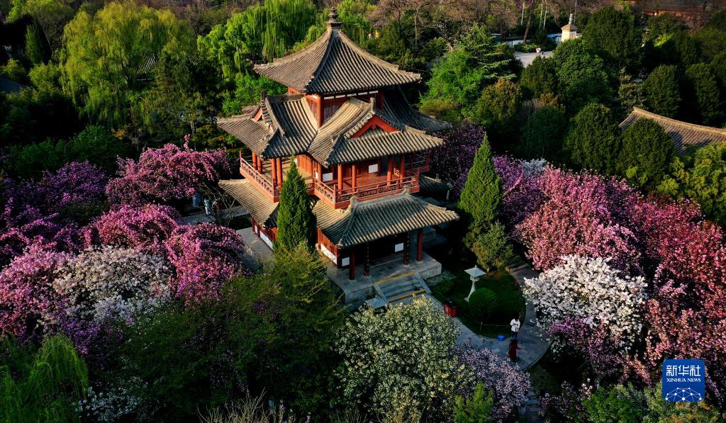 西安青龍寺遺址景區櫻花盛開(kāi)