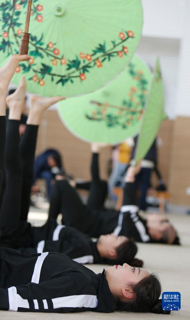 3月31日,演員在位于江蘇省鹽城市建湖縣的江蘇省雜技團訓練。
