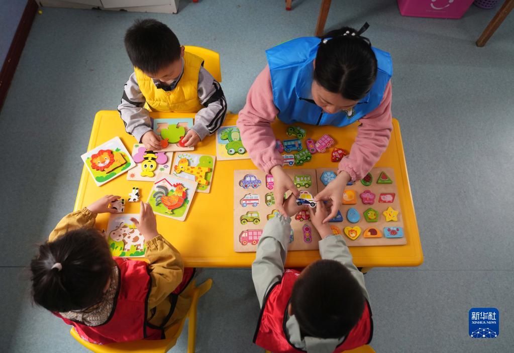 3月31日,在重慶市北碚區奔月鐵路幼兒園康教中心,特教老師幫助孤獨癥兒童進(jìn)行精細動(dòng)作訓練。