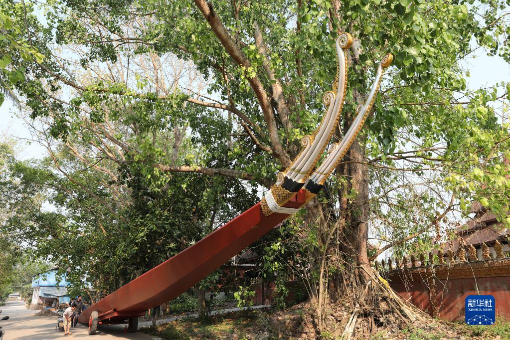 4月1日,景洪市勐罕鎮曼搭村村民在檢查龍舟。