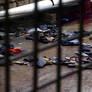 3月31日,在巴基斯坦卡拉奇,工作人員在踩踏事故現場(chǎng)工作。