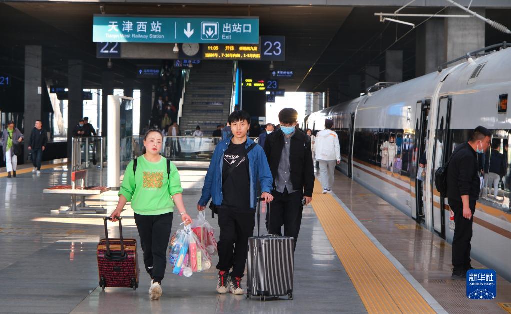 4月1日,旅客在天津西站站臺準備乘坐天津西至香港西九龍的G305次列車(chē)。