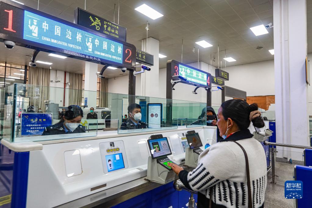 4月1日,移民管理警察在吉隆口岸驗放入境旅客。