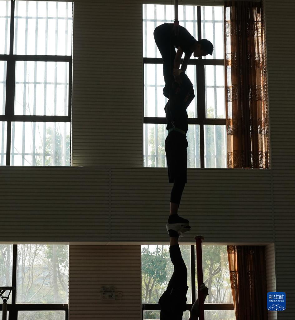 3月31日,演員在位于江蘇省鹽城市建湖縣的江蘇省雜技團訓練。