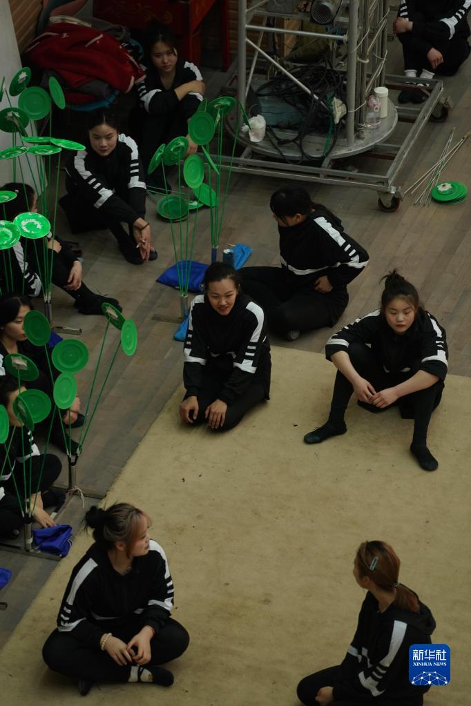 3月31日,演員在位于江蘇省鹽城市建湖縣的江蘇省雜技團訓練間歇休息。