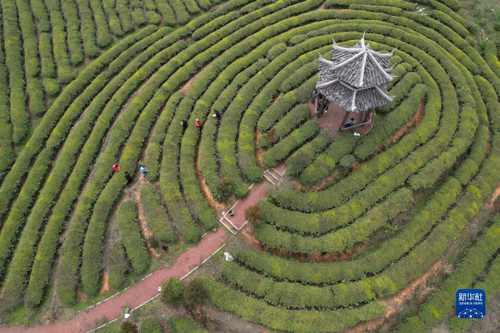 這是4月1日拍攝的岑鞏縣天馬鎮一茶葉種植基地(無(wú)人機照片)。