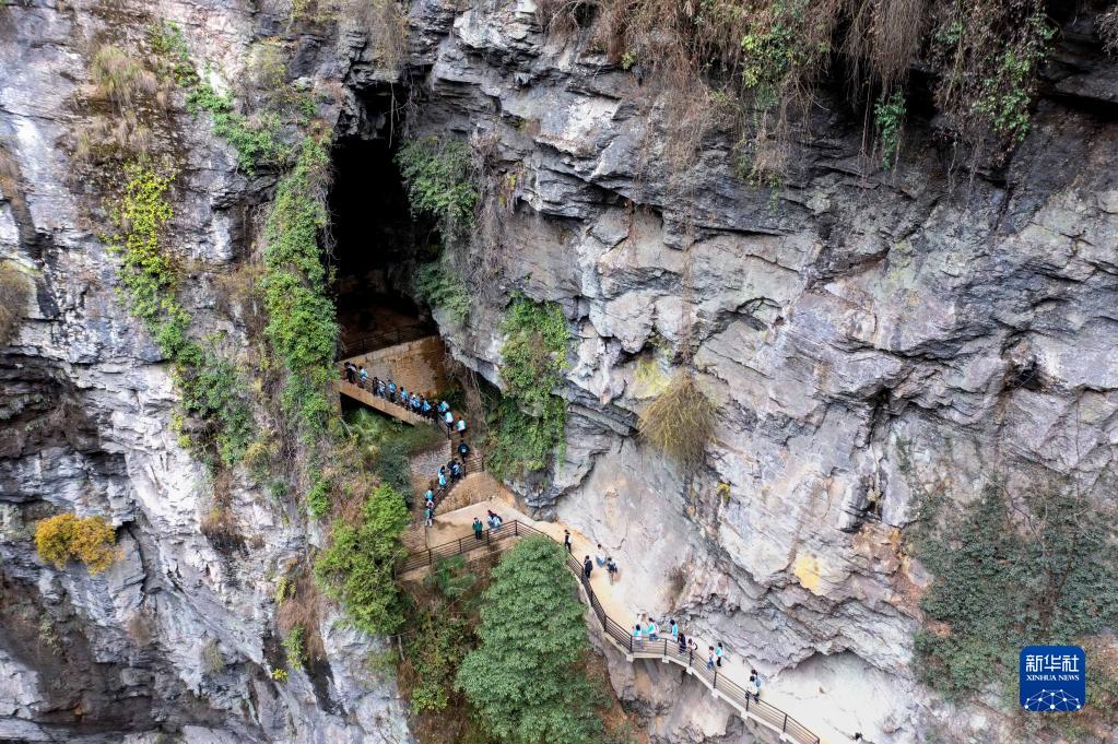 春暖花開(kāi)時(shí)節,在位于湖北省西部山區的宣恩縣矅天眼景區,眾多春季研學(xué)的師生在深達290余米的鑼圈巖天坑及周邊溶洞中進(jìn)行科普學(xué)習。