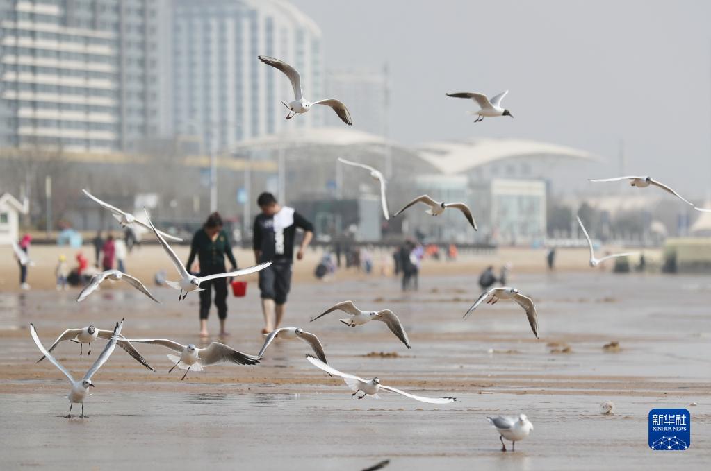 4月2日,游客在秦皇島市海港區金夢(mèng)海灣游覽。