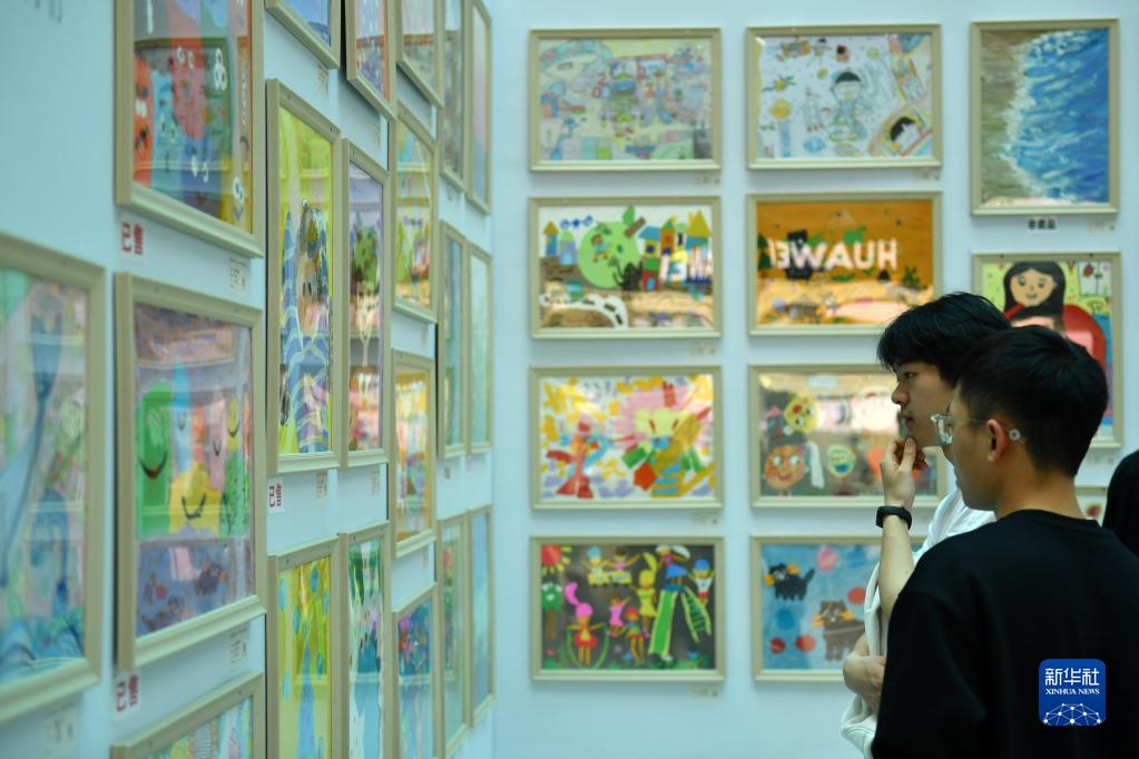 4月2日,市民在世界孤獨癥日主題慈善活動(dòng)現場(chǎng)觀(guān)看藝術(shù)畫(huà)作。