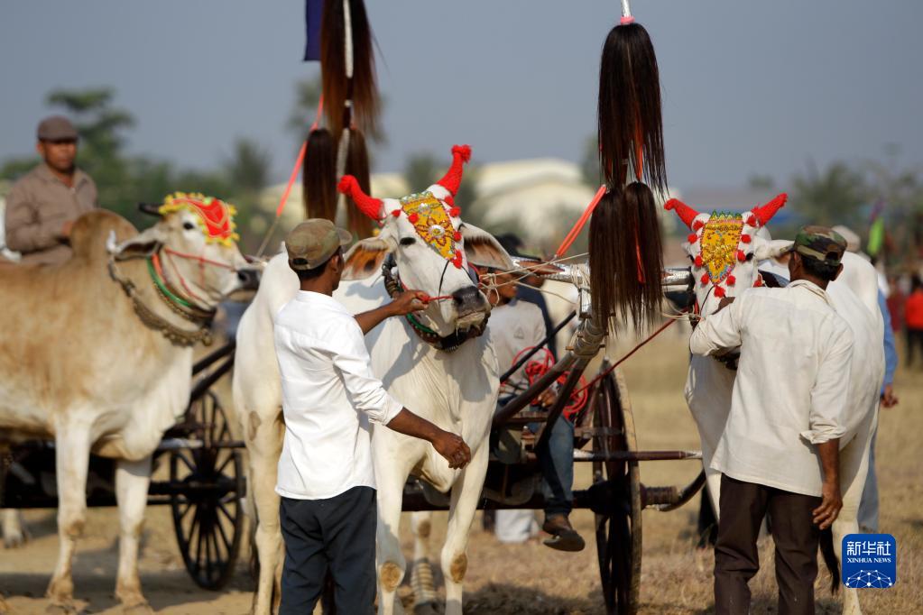 4月2日,在柬埔寨南部磅士卑省,當地農民準備參加趕牛車(chē)比賽。