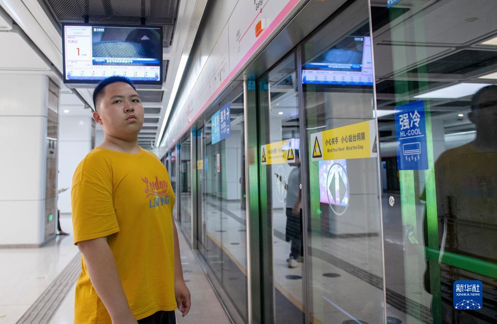 3月30日,黃志能在深圳地鐵崗廈站等待地鐵到來(lái)。