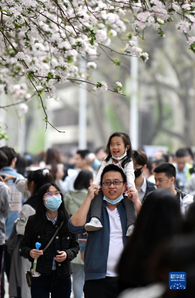 4月2日,游人在天津大學(xué)衛津路校區賞花。