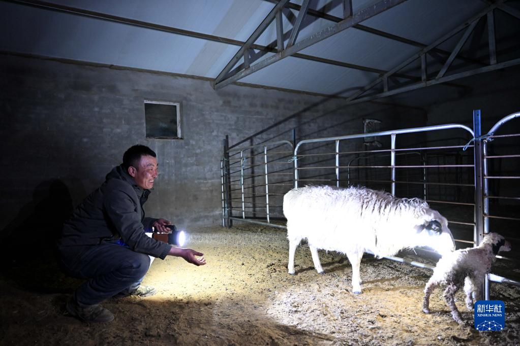 3月28日深夜,朝克德力根來(lái)到羊圈中查看母羊和新生羊羔的情況。