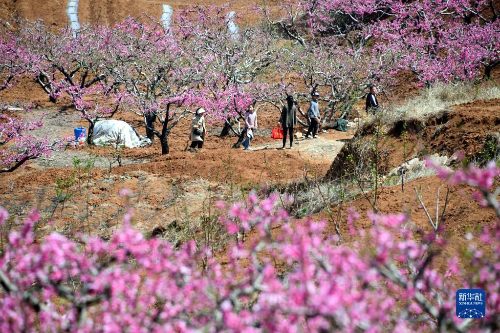 4月2日,游客在張山子鎮萬(wàn)畝桃花峪觀(guān)賞桃花。