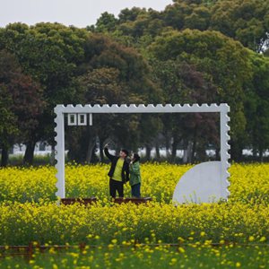 4月3日,游客在嘉興市秀洲區王店鎮鎮中村游覽鄉村美景。
