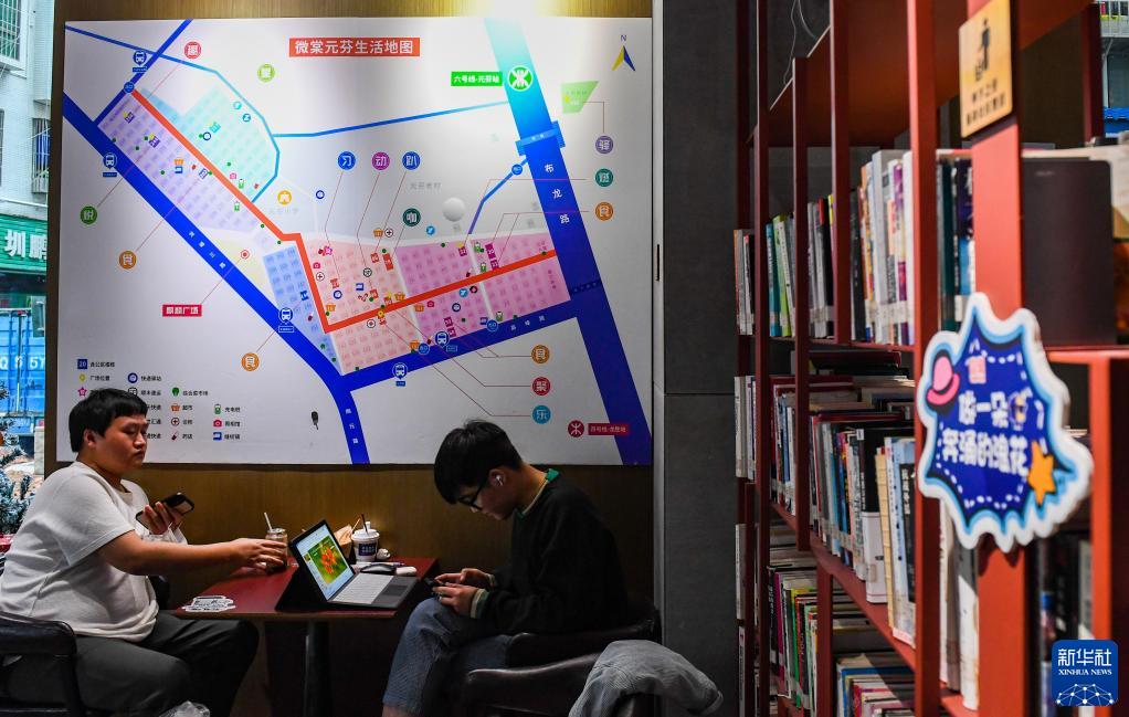 4月2日,在深圳市龍華區元芬村,居民在社區圖書(shū)室工作學(xué)習。