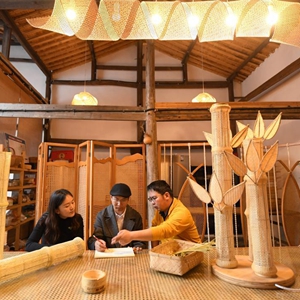 2018年,在杭州一個(gè)動(dòng)畫(huà)設計公司工作的青年姜鵬和妻子鄒霞辭去大城市的工作,回到老家龍游,在古村溪口租下一棟老房子進(jìn)行創(chuàng )業(yè)。夫妻倆發(fā)揮設計專(zhuān)長(cháng),為家鄉農產(chǎn)品代言。同時(shí),兩人又結合當地竹資源豐富的特點(diǎn),以“導師幫帶”模式,邀請專(zhuān)業(yè)院校老師和設計師共同開(kāi)發(fā)竹產(chǎn)品,帶動(dòng)周邊20余名工匠、170多戶(hù)村民參與產(chǎn)品制作。目前,他們的團隊共開(kāi)發(fā)了2600款竹產(chǎn)品,農特產(chǎn)年銷(xiāo)售額1500萬(wàn)元,參與村民戶(hù)均年增收1.8萬(wàn)元左右。