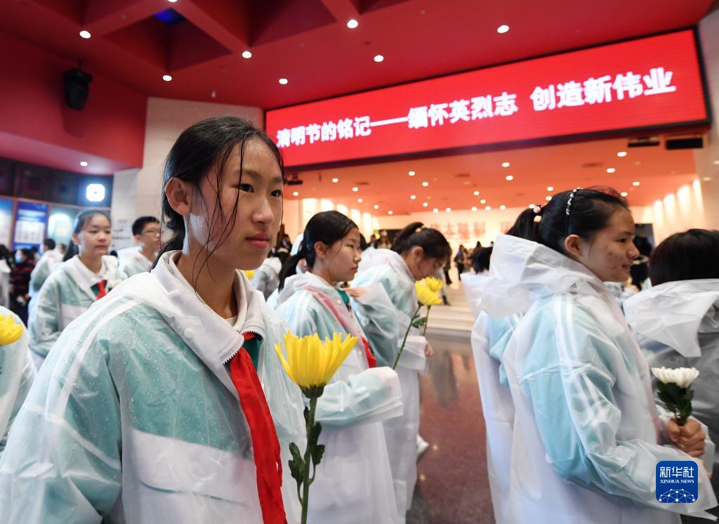 4月4日,參加活動(dòng)的學(xué)生在中國人民抗日戰爭紀念館向抗戰英烈獻花。