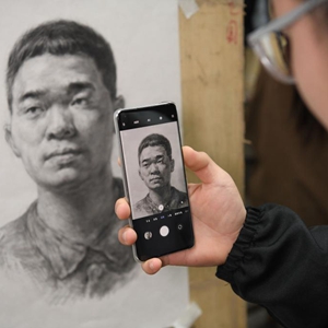 3月31日,安徽師范大學(xué)的大學(xué)生俞家瑞用手機拍攝自己創(chuàng )作的烈士畫(huà)像。