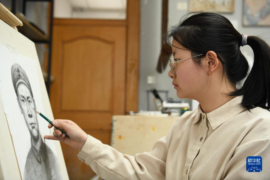自2021年11月起,安徽師范大學(xué)美術(shù)學(xué)院師生組建志愿者團隊開(kāi)展“為烈士畫(huà)像”系列公益活動(dòng)。大學(xué)生志愿者通過(guò)查閱烈士資料、聽(tīng)取烈士后代描述等方式,用手中的畫(huà)筆還原烈士面貌。