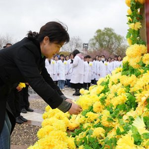 4月4日,寧夏醫科大學(xué)師生向遺體捐獻者獻花致敬。