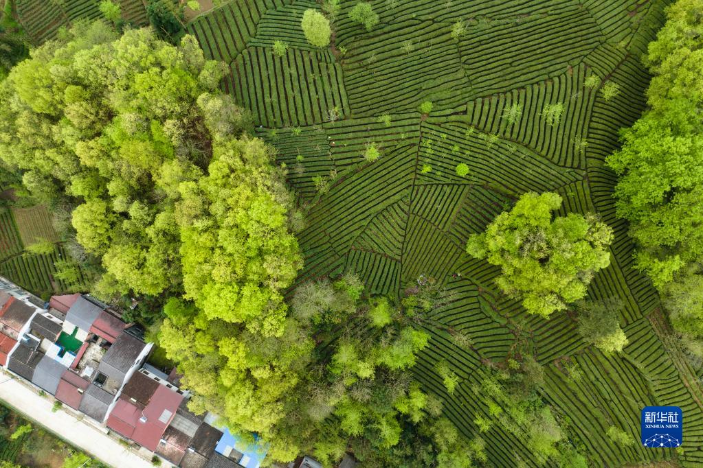 西鄉縣峽口鎮茶園景色(4月4日攝,無(wú)人機照片)。