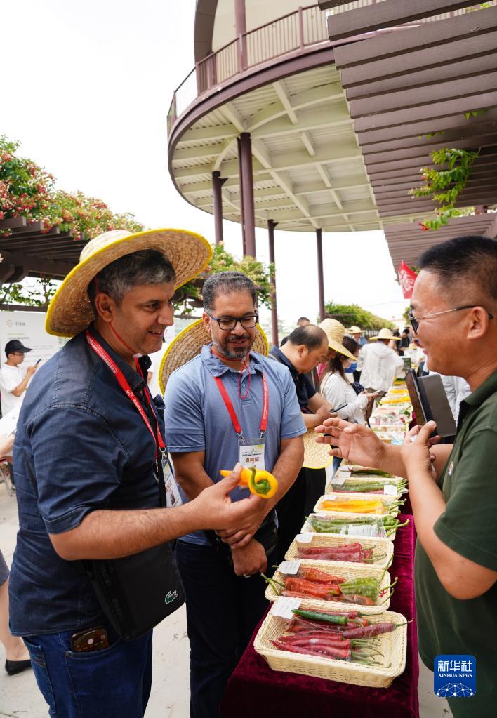三亞市崖州區國家現代農業(yè)產(chǎn)業(yè)園作為2023年中國種子大會(huì )暨南繁硅谷論壇地展環(huán)節的展示基地,共展出200多家單位培育的近30個(gè)作物類(lèi)型1800多個(gè)品種,吸引眾多與會(huì )者前來(lái)參觀(guān)。