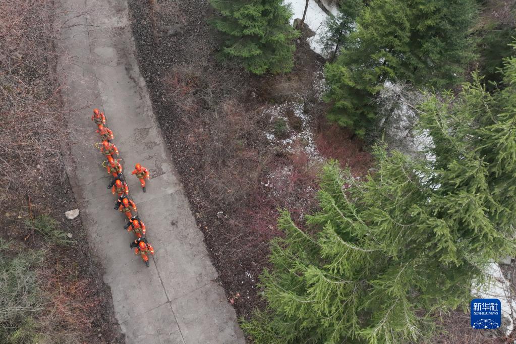 4月4日,連城駐防分隊的指戰員們在保護區內的吐魯溝國家森林公園巡護執勤(無(wú)人機照片)。