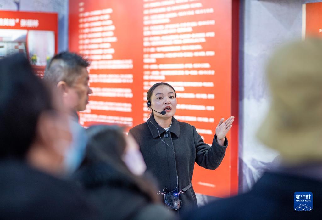 在拉薩烈士陵園,索朗拉姆為群眾講解烈士事跡(4月4日攝)。