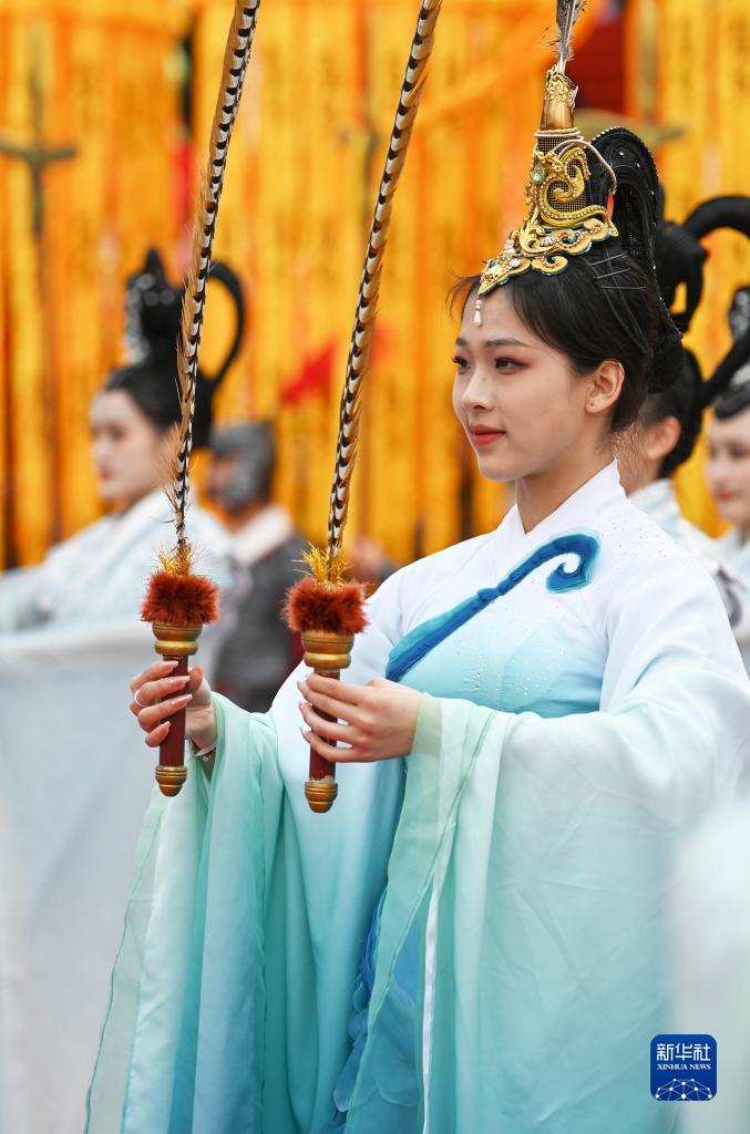 4月5日,演員在公祭軒轅黃帝典禮上表演黃帝祭典樂(lè )舞告祭。