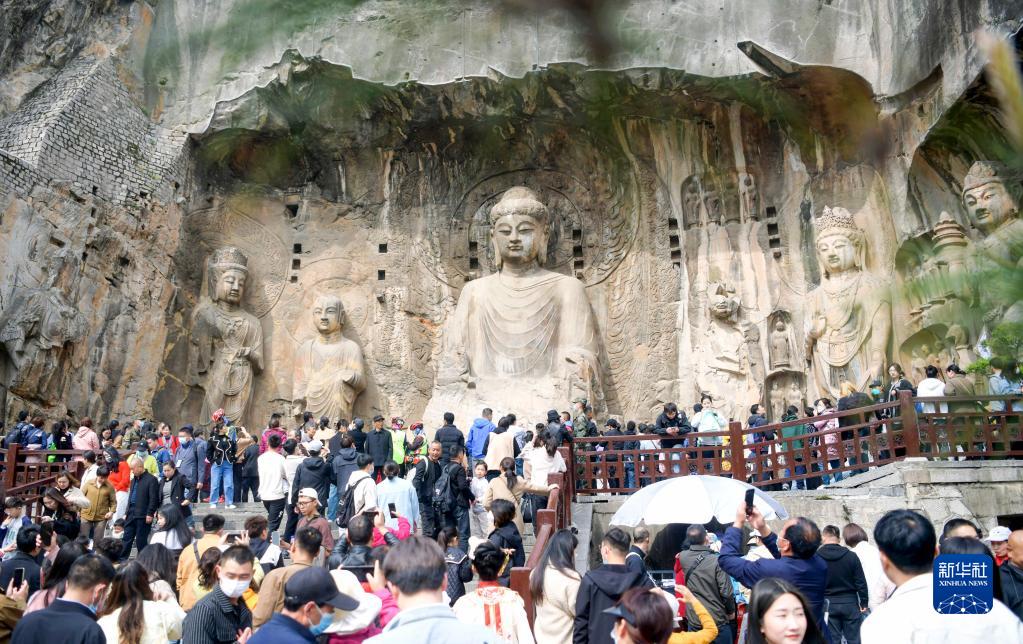 4月5日,游客在河南省洛陽(yáng)市龍門(mén)石窟景區游覽。
