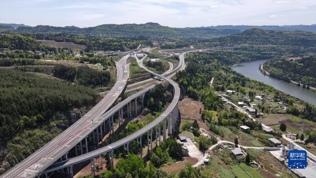 這是4月4日拍攝的鎮廣高速公路王坪至通江段局部(無(wú)人機照片)。