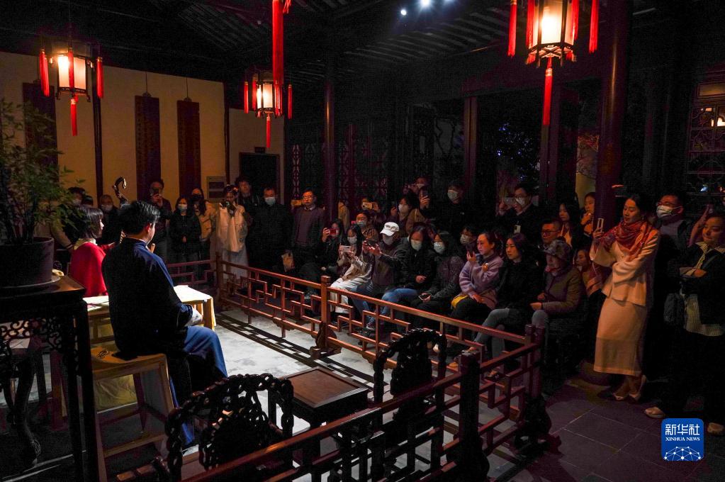 4月5日,觀(guān)眾在蘇州網(wǎng)師園內觀(guān)看評彈表演。