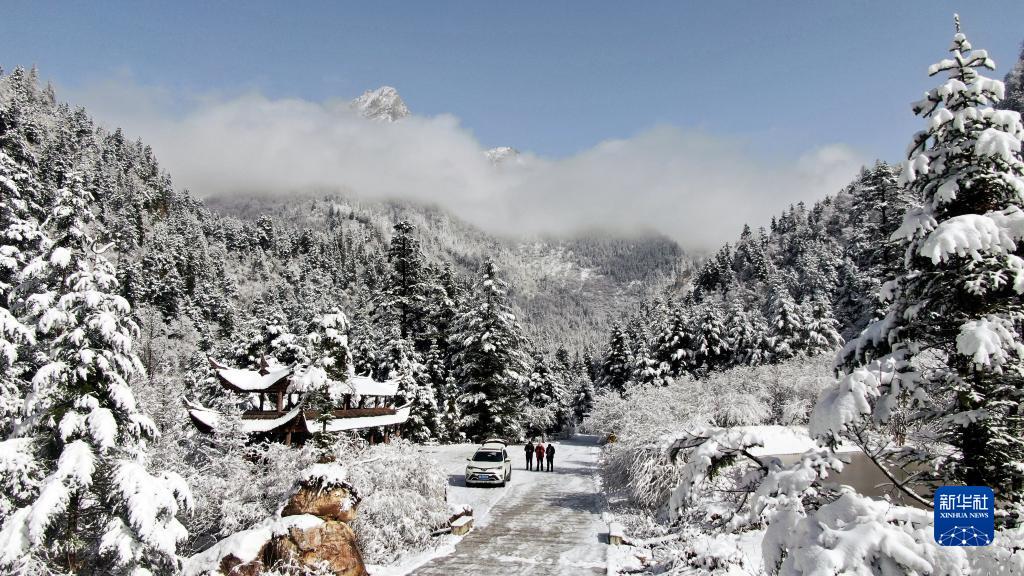 一場(chǎng)春雪過(guò)后,位于甘肅省隴南市宕昌縣的官鵝溝森林公園銀裝素裹,山巒之間云霧飄渺,美不勝收。