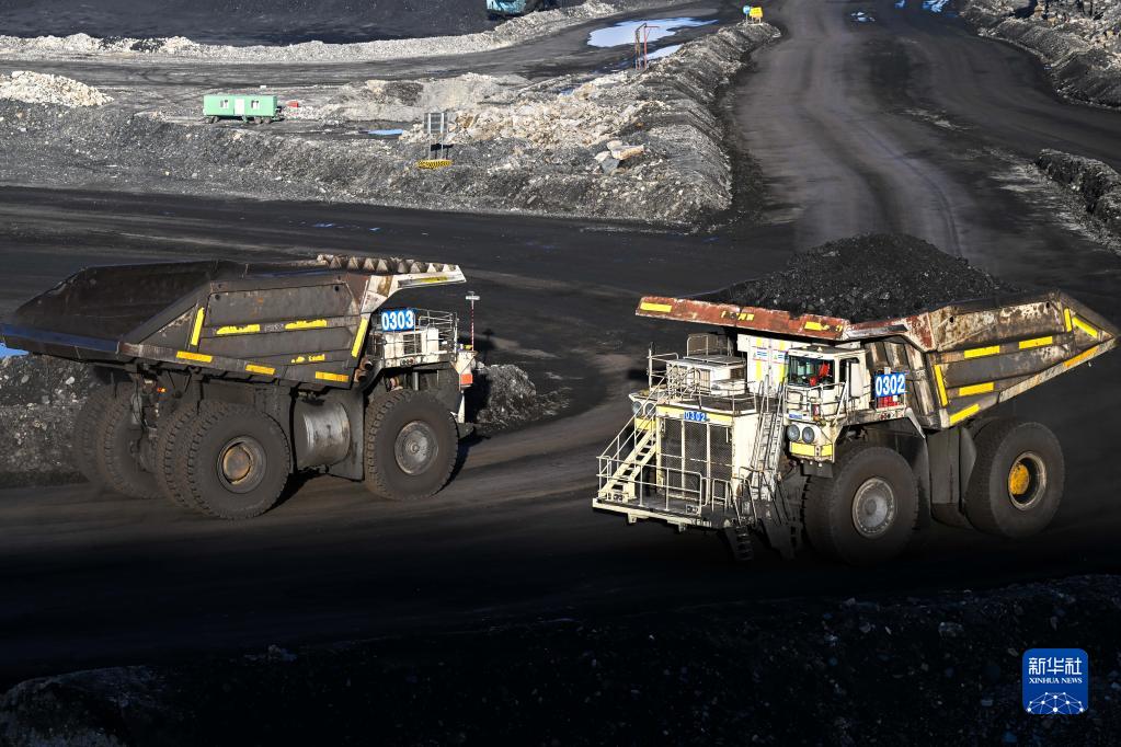 4月6日,礦車(chē)在位于準格爾旗的國家能源集團準能集團哈爾烏素露天煤礦運輸煤炭。