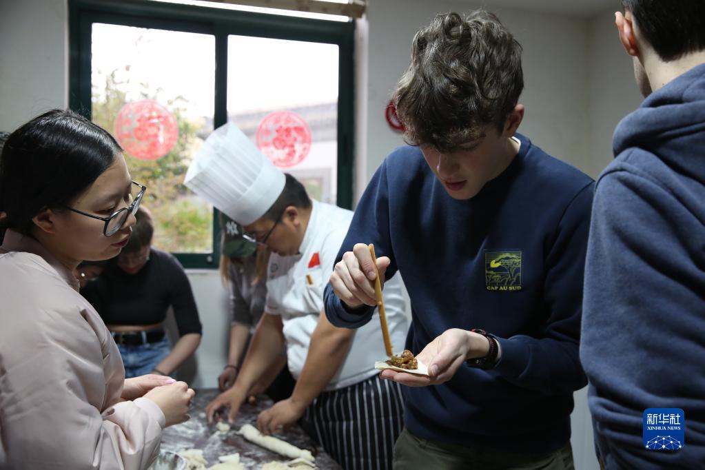 4月5日,學(xué)生們在馬耳他保拉市地中海地區中醫中心包餃子。