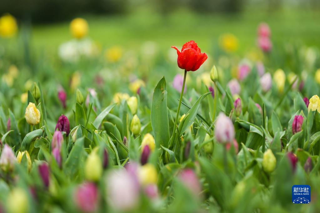 這是4月7日在比利時(shí)首都布魯塞爾以西的拜加登城堡園林拍攝的花卉。