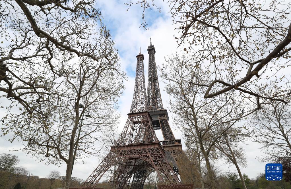 這是4月3日在法國巴黎拍攝的埃菲爾鐵塔(后)和“小埃菲爾鐵塔”。