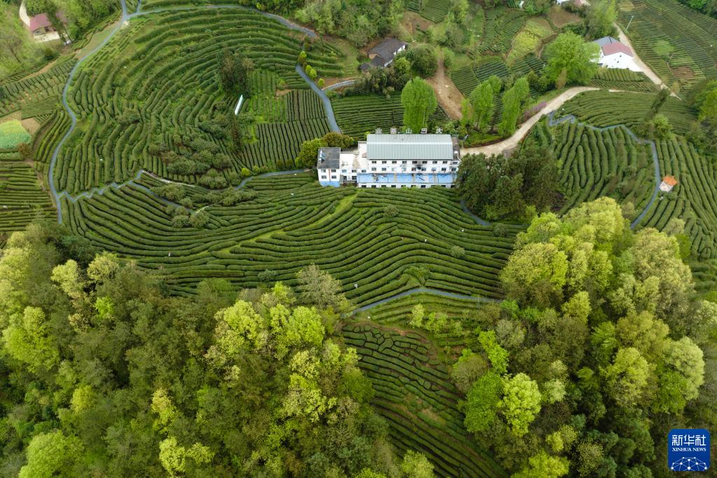 漢中市西鄉縣峽口鎮茶園茶廠(chǎng)景色(4月4日攝,無(wú)人機照片)。