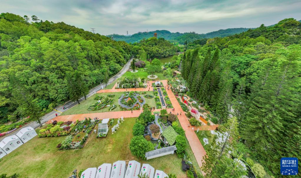 4月8日拍攝的2023粵港澳大灣區花展(無(wú)人機照片)。