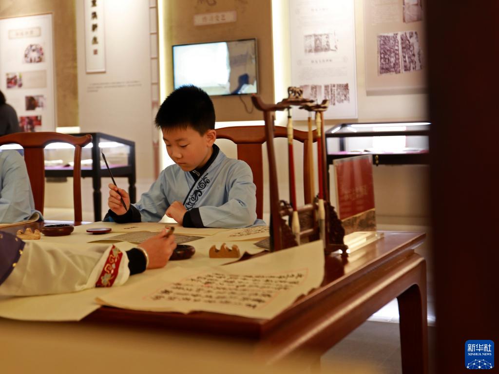 4月8日,觀(guān)眾在“繼往開(kāi)來(lái) 國韻書(shū)香——古籍保護與傳承特展”中臨摹古籍碑帖。