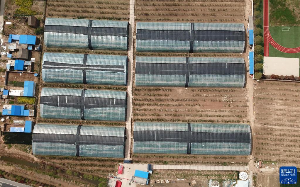 4月8日拍攝的一處位于山東省成武縣南魯集鎮的大棚櫻桃種植園(無(wú)人機照片)。