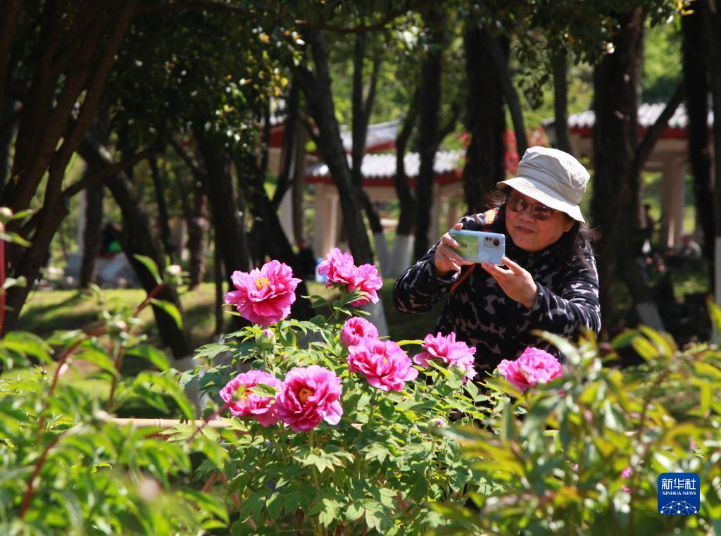 4月8日,市民在南京古林公園拍攝盛開(kāi)的牡丹花。