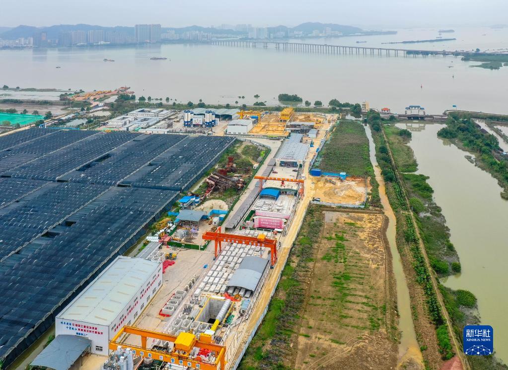 這是深江鐵路珠江口隧道廣州南沙段盾構起始點(diǎn)(4月10攝,無(wú)人機照片)。