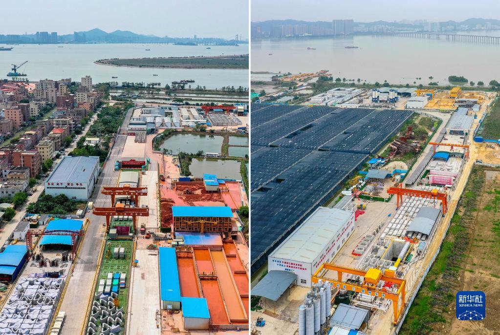 拼版照片:左圖為深江鐵路珠江口隧道東莞虎門(mén)段盾構起始點(diǎn)(4月7日攝,無(wú)人機照片),右圖為深江鐵路珠江口隧道廣州南沙段盾構起始點(diǎn)(4月10攝,無(wú)人機照片)。