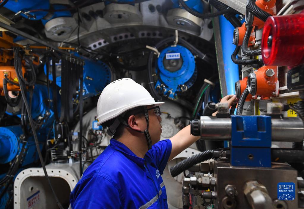 在深江鐵路珠江口隧道東莞虎門(mén)段,中鐵十四局施工人員在檢查“深江1號”盾構機運行狀況(4月7日攝)。
