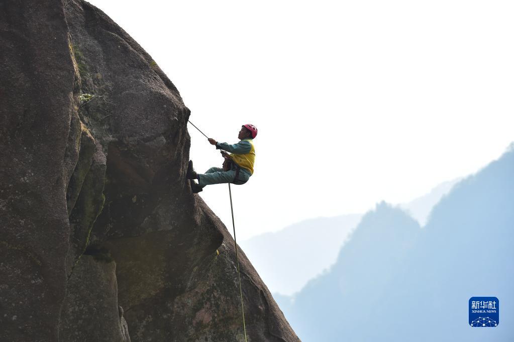 在安徽黃山風(fēng)景區,有這樣一群特殊的環(huán)衛工,他們常年攀爬在懸崖峭壁間清理垃圾。玉屏環(huán)衛所的李培生是他們中的一員,20多年來(lái),李培生累計放繩長(cháng)度達1800公里,除了巡查并清理垃圾,還經(jīng)常幫助游客撿拾掉下懸崖的物品,2012年被評為“中國好人”。黃山風(fēng)景區一共有18名像李培生這樣的放繩工,他們用辛勤的汗水守護著(zhù)黃山的美麗。