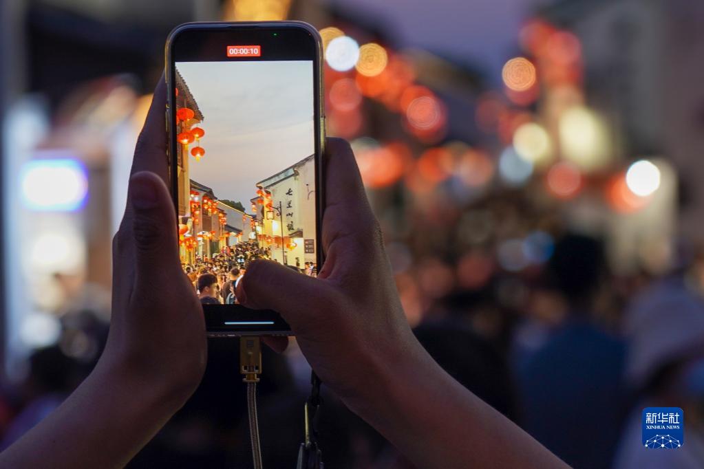 江蘇蘇州:山塘街里游人如織