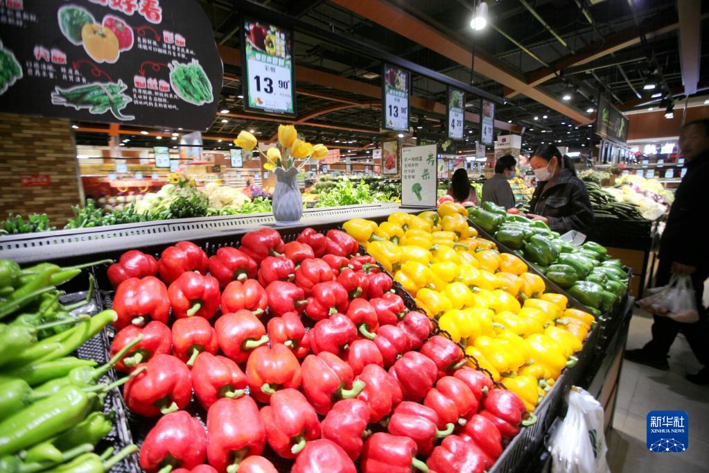 4月11日,顧客在山東省臨沂市平邑縣一家超市選購蔬菜。